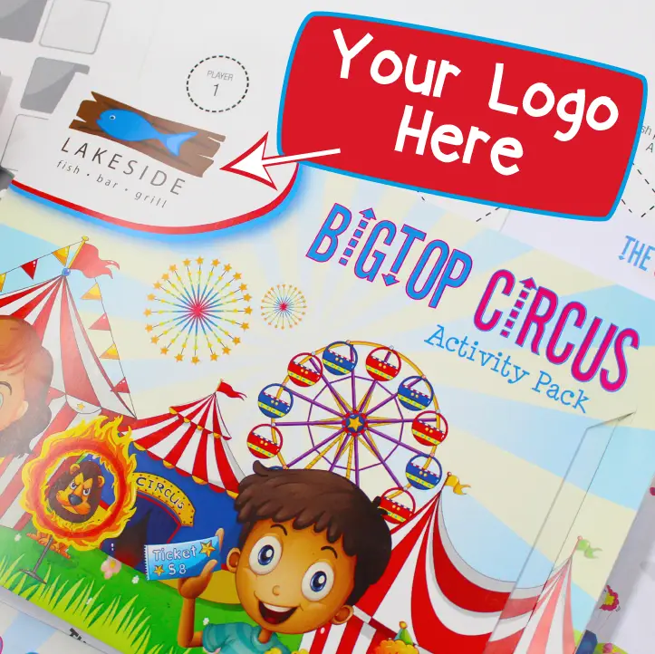 Boost your brand with our Logo Branded Premium Kids Activity Packs, featuring your logo on our best-selling, full sized kids activity packs. Designed for high visual impact and to WOW families, keeping them entertained for hours! Packed with activities in a premium glossy folder including a snakes and ladders board game to encourage family interaction. Produced in-house with a fast 5-10 day turnaround.
