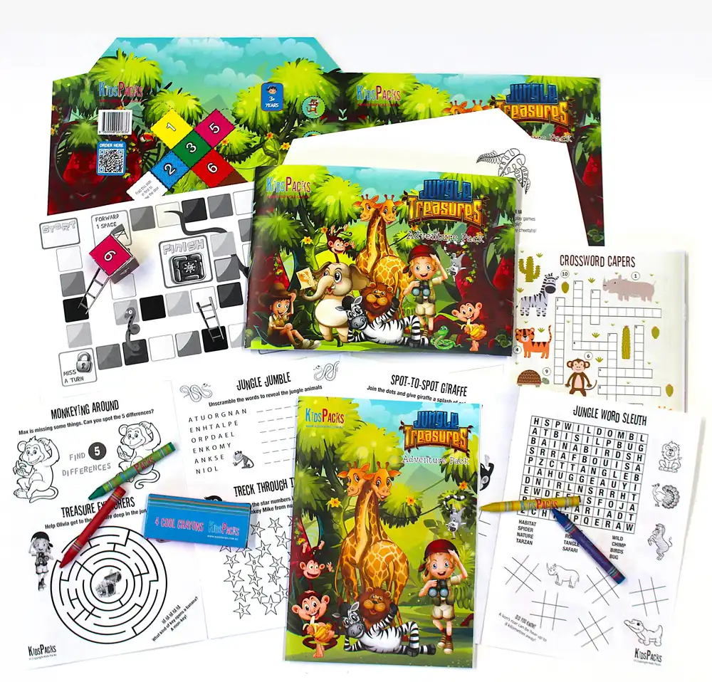 Our full sized kids packs are created to achieve the highest visual impact, encourage family interaction and are presented in a premium glossy folder. They offer the best value for money with more activities and include a board game in every pack.